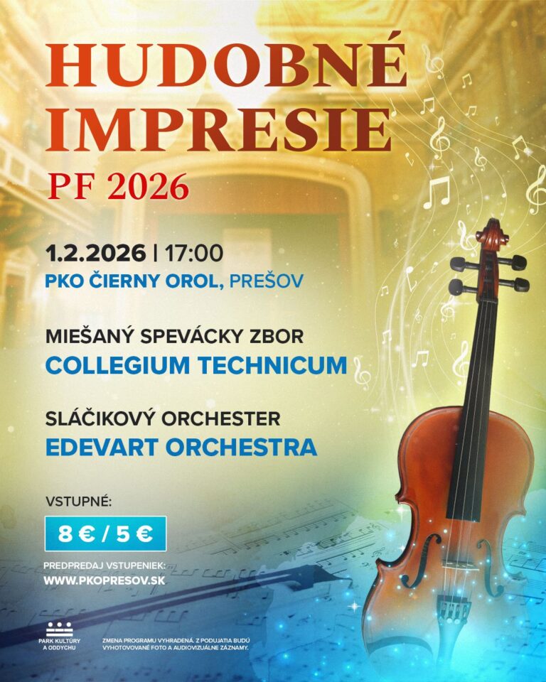 Vstúpte do nového roka s hudbou, ktorá spája emóciu, tradíciu a umeleckú kvalitu. Novoročný koncert Hudobné impresie PF 2026 ponúkne slávnostný večer v podaní renomovaného miešaného speváckeho zboru Collegium Technicum a mladého a energického sláčikového orchestra Edevart Orchestra.