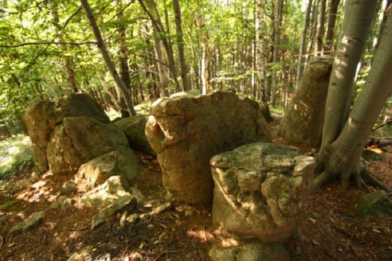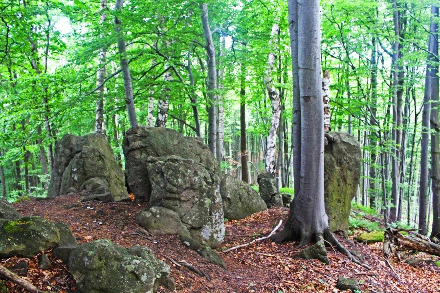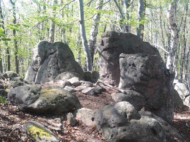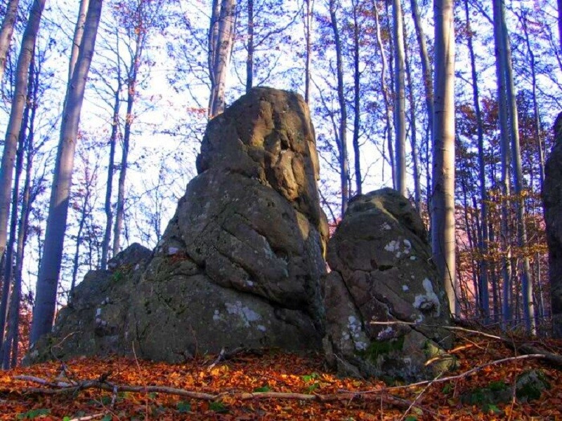 Prírodný útvar Kamenná tvár sa nachádza na konci bočného hrebienka, ktorý vychádza severovýchodne od vrcholu Mohyliek. Je na severnom ukončení hrebienka, takže sa vlastne jedná o prírodný skalný útvar, premenené čelo lávového prúdu. Zvetrávanie, poveternostné podmienky vytvorili spoločne s prirodzenými vlastnosťami horniny podliehajúcej týmto zmenám unikátny reliéf, ktorý pripomína črty ľudskej tváre. Tieto črty (oči, nos, ústa...) vo svojej kombinácii naozaj pri prispení fantázie a obrazotvornosti pripomínajú ľudskú tvár, akoby vytesanú do kameňa.